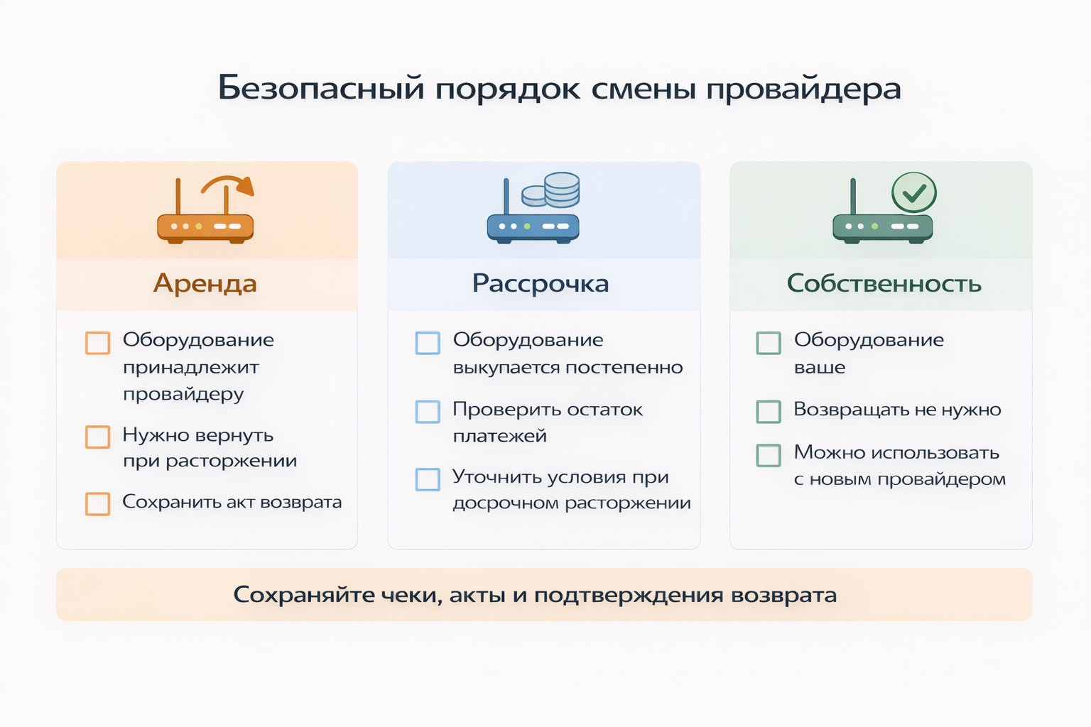 Перед сменой провайдера важно проверить, какое оборудование нужно вернуть, а какое остается у вас